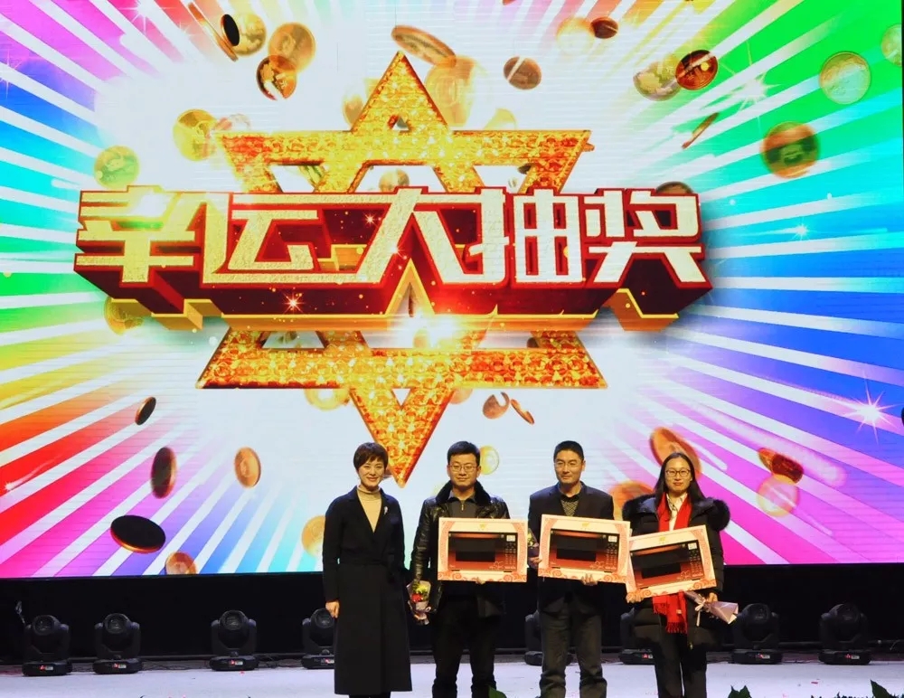 年会里除了精彩纷呈的节目,当然更少不了幸运大抽奖和微信抢红包!便携台灯、按摩仪、年货大礼包、微波炉、感恩父母旅游大奖接连诞生,欢呼声连连。