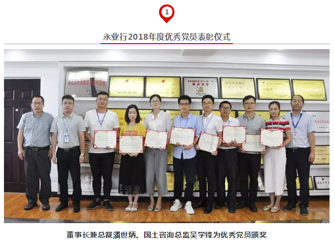 下午进行的系列表彰活动由常务副总裁王琴主持。副总裁雷小军宣读了永业行2018年优秀共产党员表彰决定,对曲双双等10名优秀党员进行了表彰;咨询业务总监文云波宣读了永业行2017年度验收通过课题名单,对涉及资源环境、国土规划、地矿咨询、投资咨询、不动产登记测绘等业务领域的14个课题进行了表彰并颁奖。
