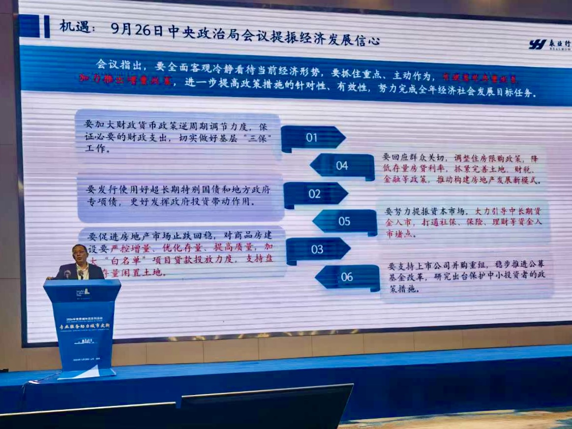 2024年10月28日,中国房地产估价师与房地产经纪人学会(下称“中房学”)在威海召开2024年世界城市日中国主场活动“专业服务助力城市更新”研讨会。中房学会长柴强出席会议并致辞。世界估价组织协会荣誉会长、新加坡测量师与估价师学会会长林兰源参加会议。中房学副会长、永业行董事长潘世炳受邀参加会议并作主题发言。